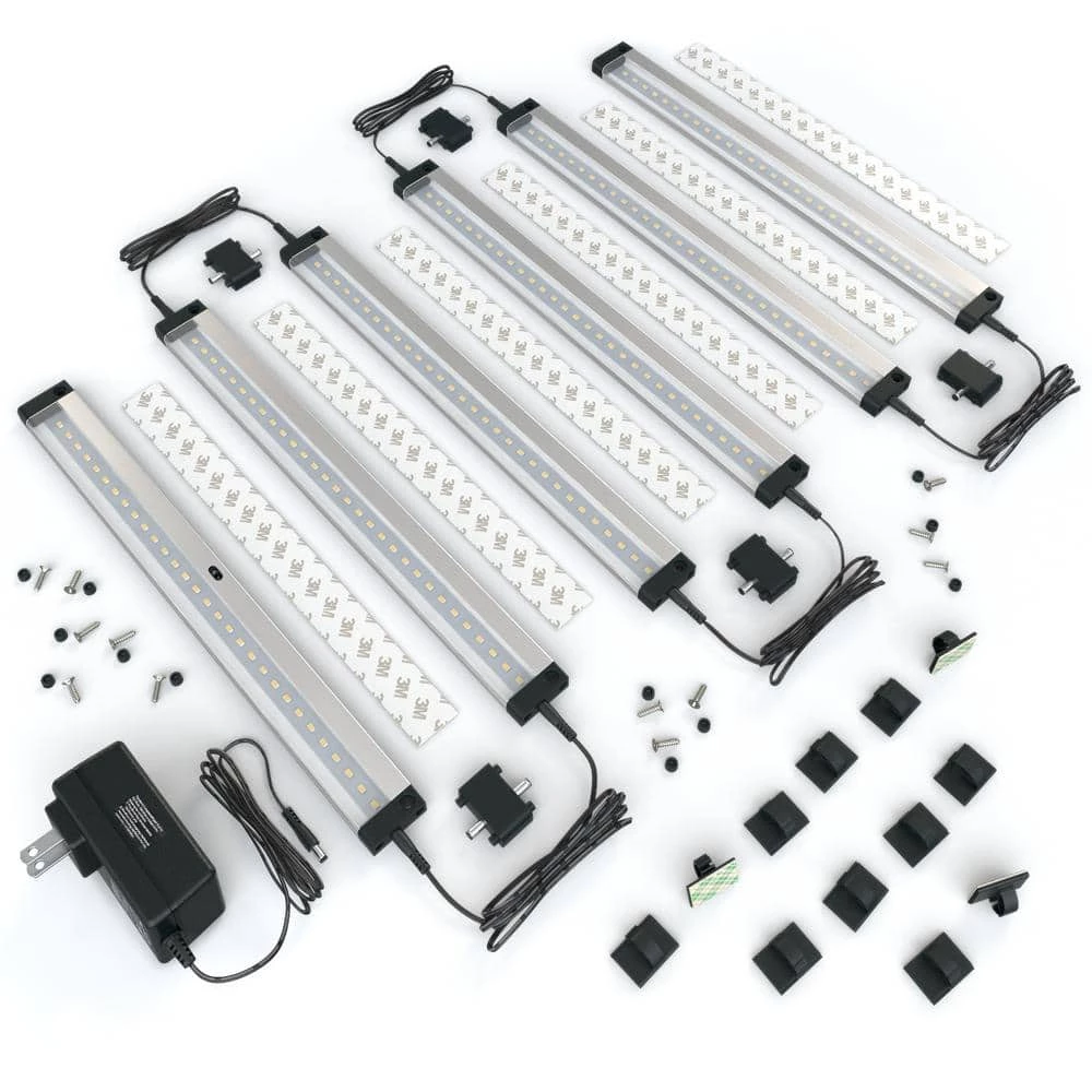 Discover Dimmable Hand Wave Activated LED Lighting with This 6-Bar Under-Cabinet LED Lighting Kit. With 6 LED bars, a 24-Watt power supply and a full complement of screws, wire clips and stickers, you’ll have everything you need to install warm, energy-saving light in your kitchen, pantry, garage, office, workshop, RV and more. Wave Your Hand: That’s all it takes to turn on or off your lights, hold your hand under the sensor, you can adjust brightness from 10% to 100%. Quick Install: For the quickest and lowest profile install, simply use the included double-sided stickers. Whether you want to install all 6 lights together in a chain or spread them further apart beneath your cabinets, this kit includes everything you’ll need.