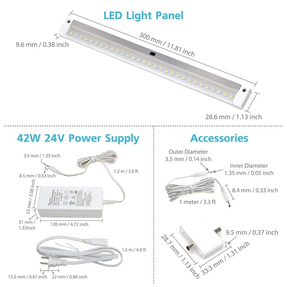 Discover Dimmable Hand Wave Activated LED Lighting with This 12-Bar Under-Cabinet LED Lighting Kit. With 12 LED bars, a 42-Watt power supply and a full complement of screws, wire clips and stickers, you’ll have everything you need to install warm, energy-saving light in your kitchen, pantry, garage, office, workshop, RV and more. Wave Your Hand: That’s all it takes to turn on or off your lights, hold your hand under the sensor, you can adjust brightness from 10% to 100%. Quick Install: For the quickest and lowest profile install, simply use the included double-sided stickers. Whether you want to install all 12 lights together in a chain or spread them further apart beneath your cabinets, this kit includes everything you’ll need.