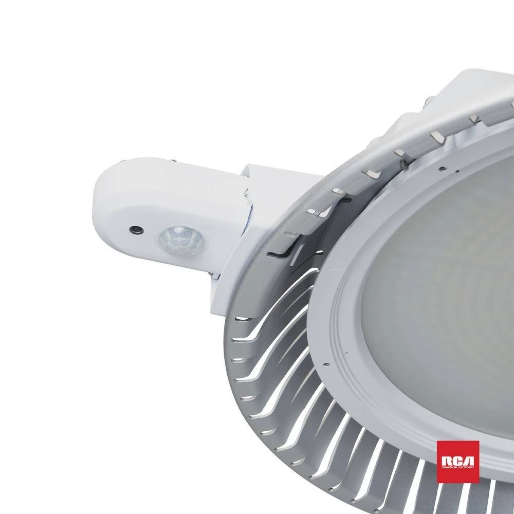 Reduce maintenance and labor costs with RCA Lighting’s 93-Watt LED High Bay. This energy-efficient, round and IP65-rated LED high bay, with wireless communications, is designed for easy installation thanks to its advanced wireless grouping technology and lightweight 9.5 lbs. design. RCA’s round, IP65-rated high bay is ideal for installations in food processing facilities and gymnasiums. It is appropriate for each environment, respectively, because it can be washed by power hose and high durability thanks to its polycarbonate lenses. Die-cast aluminum heat sink, IP65 rating prevents dust and water intrusion. Resistant to rough vibrations and external impacts. This light was made for longevity and low maintenance making it the perfect warehouse High Bay light.