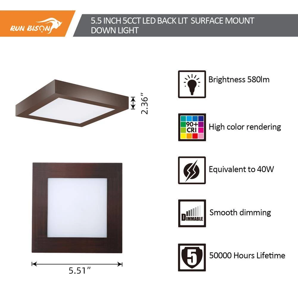 - Energy saving: the 5.5 in. flush mount LED downlight offers high brightness with 580 Lumens output equivalent to 40-Watt incandescent, cut down the electric bill up to 80%, the flush mount LED ceiling light comes with 90 plus CRI provides superior color rendering