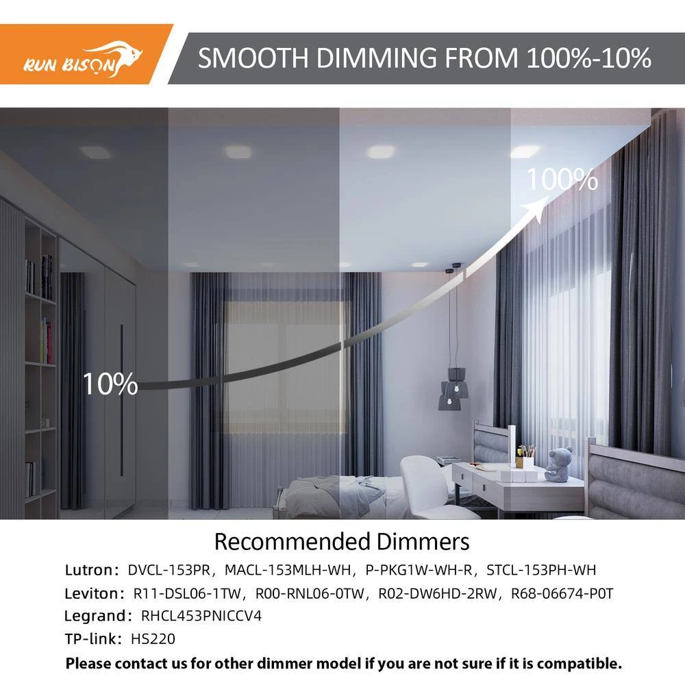 - Smooth dimming: the flush mount recessed retrofit ceiling lights match most TRIAC dimmers in the market, smooth dimming range from 10% to 100%