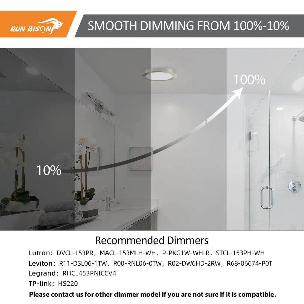 - Smooth dimming: the flush mount recessed retrofit ceiling lights match most TRIAC dimmers in the market, smooth dimming range from 10% to 100%