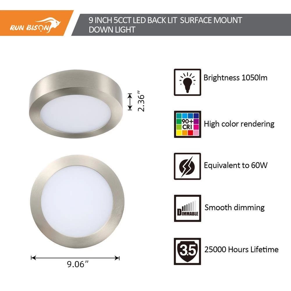 - Energy saving: the 9 in. flush mount LED downlight offers high brightness with 1,050 Lumens output equivalent to 60-Watt incandescent, cut down the electric bill up to 80%, the flush mount LED ceiling light comes with 90 plus CRI provides superior color rendering
