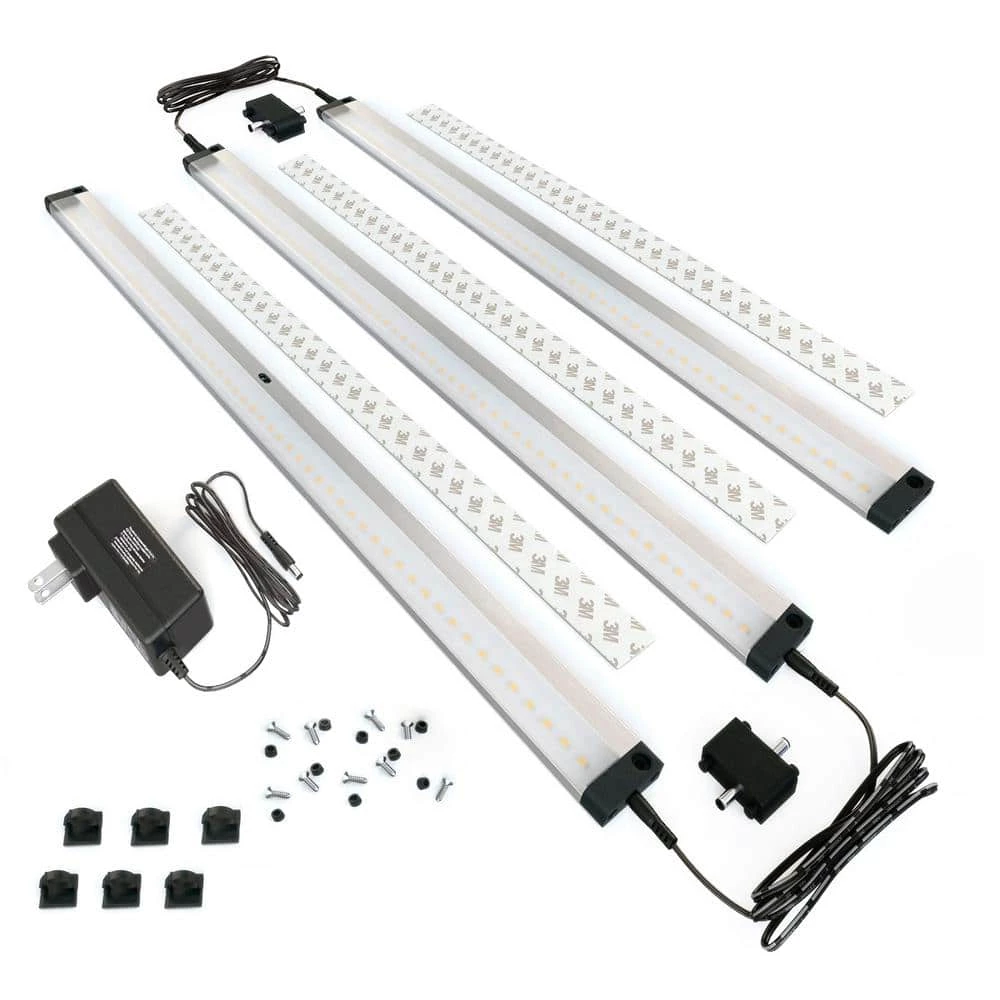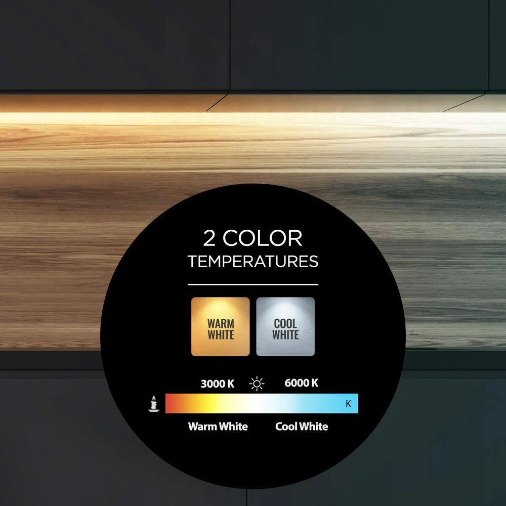 Discover Dimmable Hand Wave Activated LED Lighting with This 3-Bar Under-Cabinet LED Lighting Kit. With 3 LED bars, an 18-Watt power supply and a full complement of screws, wire clips and stickers, you’ll have everything you need to install warm, energy-saving light in your kitchen, pantry, garage, office, workshop, RV and more. Wave Your Hand: That’s all it takes to turn on or off your lights, hold your hand under the sensor, you can adjust brightness from 10% to 100%. Quick Install: For the quickest and lowest profile install, simply use the included double-sided stickers. Whether you want to install all 3 lights together in a chain or spread them further apart beneath your cabinets, this kit includes everything you’ll need.