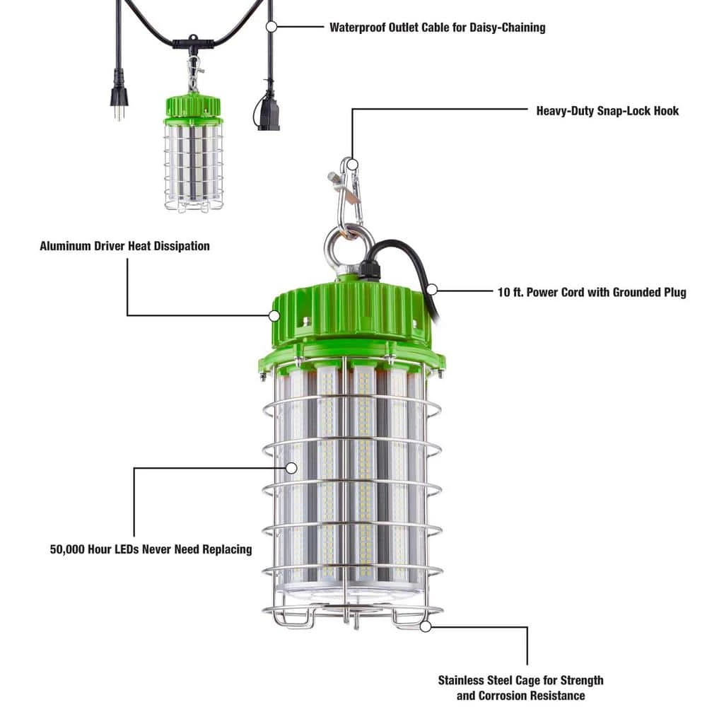 - Power is supplied to the light with a 16/3 10 ft. linkable power cord to enable up to a max 4 units of daisy chained construction lights with an operating temperature range of minus 25° F to minus 140° F