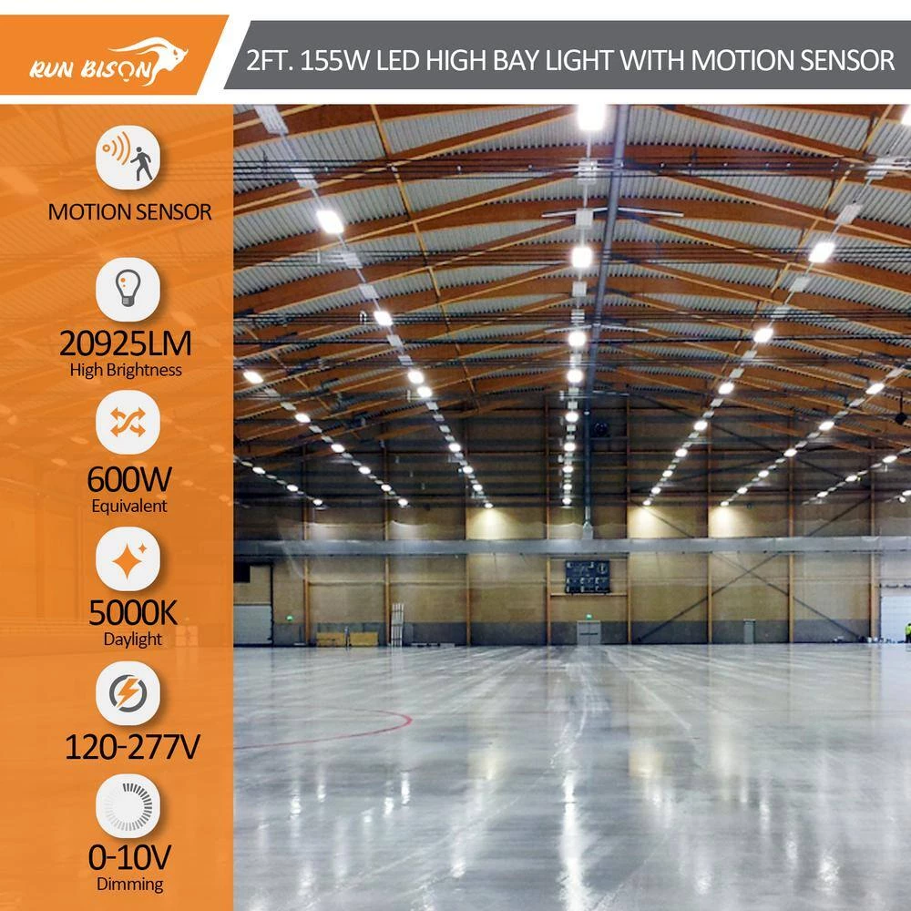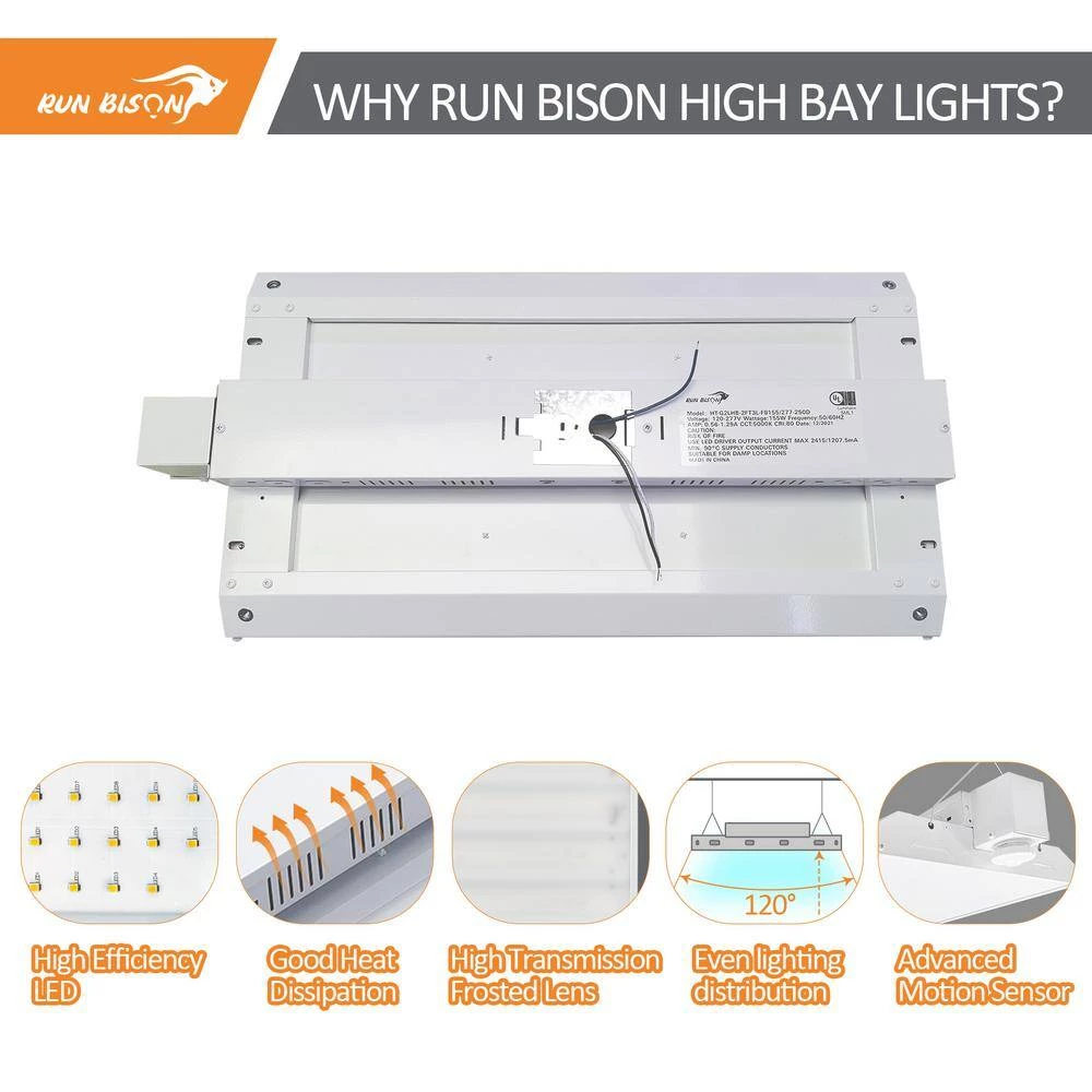 The RUN BISON LED high bay light with Motion Sensor provides an exceptional quality lighting environment and more productive ambiance for workplaces, retail, office and school with high efficiency. Compared with conventional fluorescent fixtures, LED offers more than 60% or more energy saving and last at least 50000-hours with DLC standard or premium compliance. Offering substantial energy savings and no mercury lamp content, LED commercial lighting is ideal for new construction and retrofit projects.