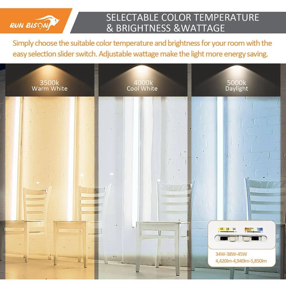 - 【3CCT ADJUSTABLE COLOR】The RUN BISON4 Foot Linear Integrated LED Ceiling Light Fixtures provide 3 color temperatures of 3500K soft white, 4000K cool white or 5000K bright white for selection, you can choose the most suitable light for the school, office, workshop, warehouse,meeting room, showroom, corridor and so on.