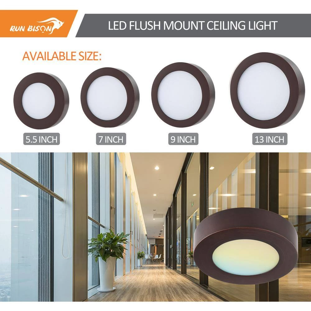 This elegant design product can provide exceptional performance in general lighting application and can also serve as a cost effective temporary lighting solution. The flush mount LED downlight provide 5 color temperatures of 2700K soft white, 3000K warm white, 3500K natural white, 4000K cool white or 5000K daylight for selection, you can choose the most suitable light for the living room, bedroom, bathroom and other areas according to your preferences. The RUN BISON flush mount Offers high brightness with 1,375 Lumens output equivalent to 40-Watt incandescent, comes with 90 plus CRI provides superior color rendering. Featuring Driver on Board technology that increases performance and reliability. The flush mount match most TRIAC dimmers in the market, smooth dimming range from 10% to 100%. This canless LED downlight is proved for top quality standard and safe operation. ETL-Listed for your safety we uphold the highest standards for all our products by testing each product for optimal performance and safety. Our LED retrofit downlights are instant on with the latest in LED flicker -free technology for maximum eye comfort.
