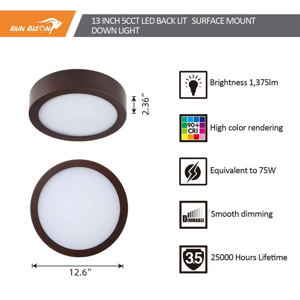 - Energy saving: the 13 in. flush mount LED downlight offers high brightness with 1,375 Lumens output equivalent to 75-Watt incandescent, cut down the electric bill up to 80%, the flush mount LED ceiling light comes with 90 plus CRI provides superior color rendering