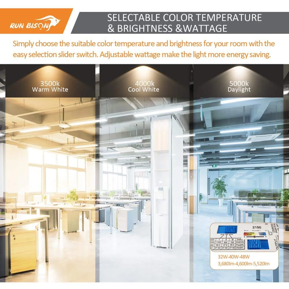 - 3 cct adjustable color the RUN BISON 4 ft. LED wrap light provide 3-color temperatures of 3500K natural white, 4000K cool white or 5000K daylight for selection, you can choose the most suitable light for the cool storage warehouse, car wash, parking garage, tunnel, barns and so on