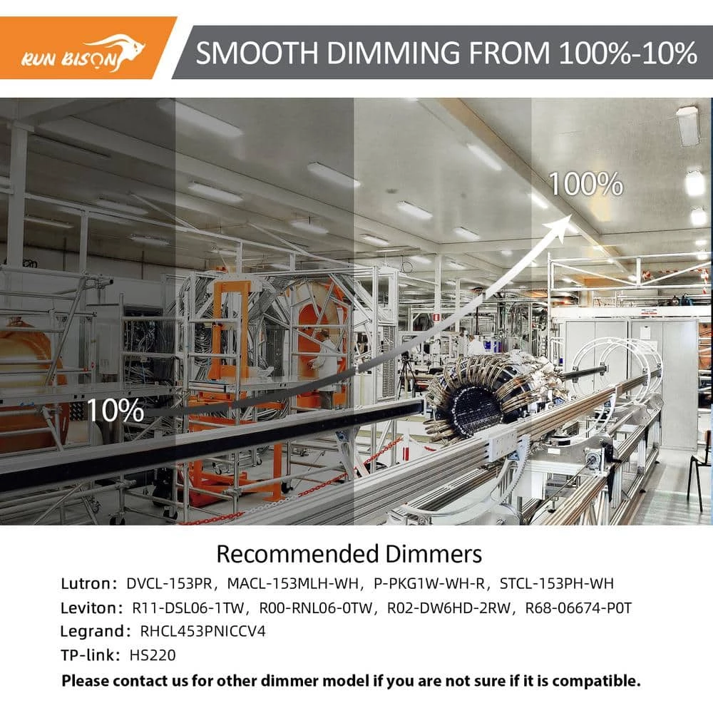 - Smooth dimming – the LED shop light fixture can match most dimmers in the market, smooth dimming range from 10% to 100% with a 0-Volt to 10-Volt dimmer adjust your LED wrap light fixture to your preferred setting so you have just the perfect amount of lighting needed