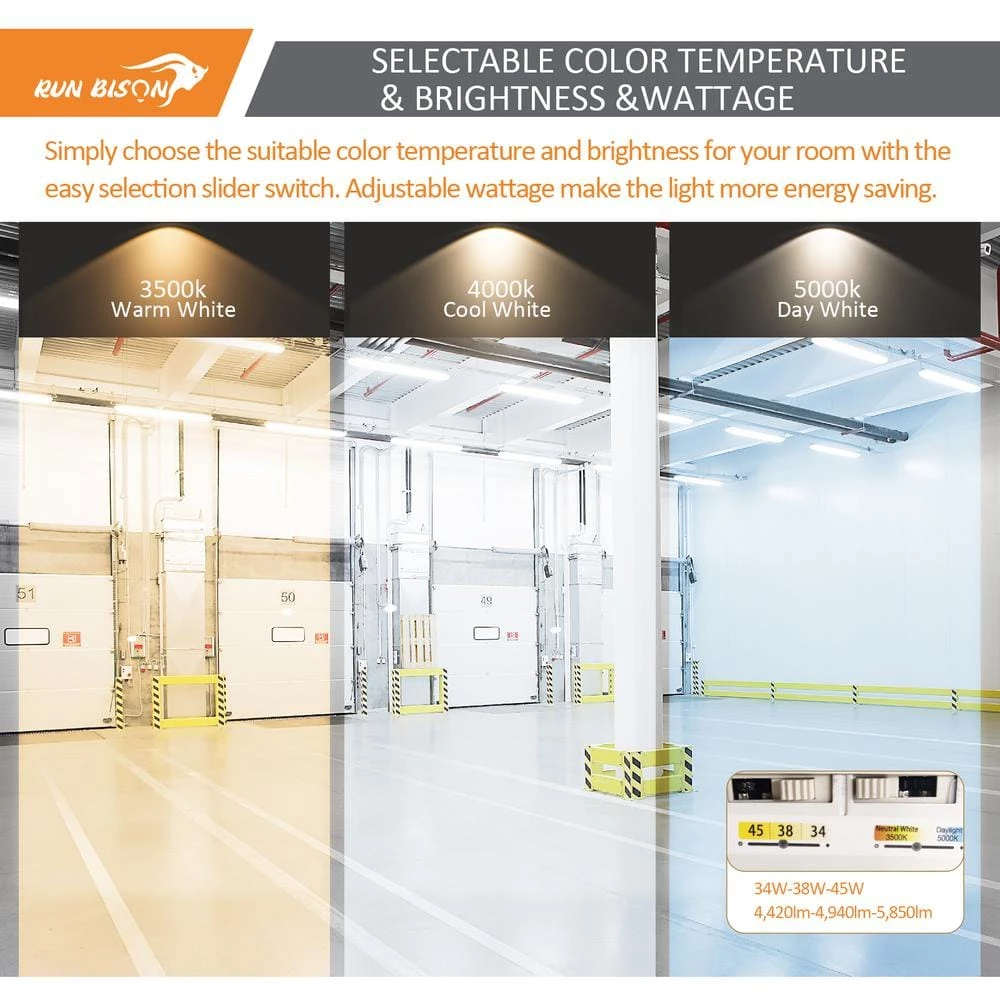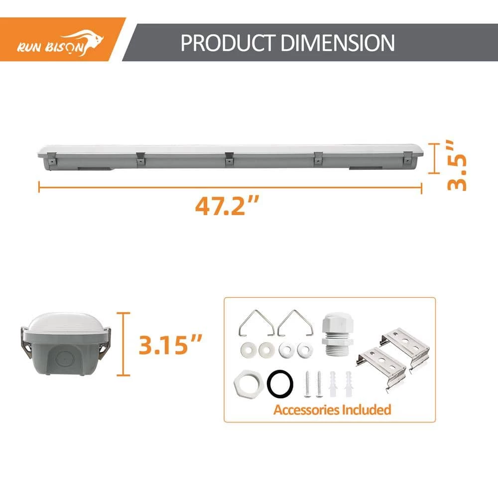 - 【3CCT ADJUSTABLE COLOR】The RUN BISON 4FT LED Vapor Tight Light provide 3 color temperatures of 3500K soft white, 4000K cool white or 5000K bright white for selection, you can choose the most suitable light for the Cool Storage Warehouse, Car Wash, Parking Garage,Tunnel,Barns and so on.