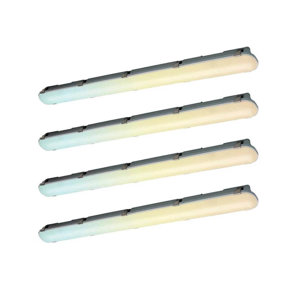 - 【ENERGY SAVING】 The 4ft sealed lighting fixture allows for adjustment of the input power 34-Watt/38-Watt/45-Watt, Lumens output 4420 Lumens/4940Lumens/5850 Lumens.Replacing an Fluorescent fixture with this Vapor Proof Parking Garage Light Fixture can save you as much on your current energy costs.
