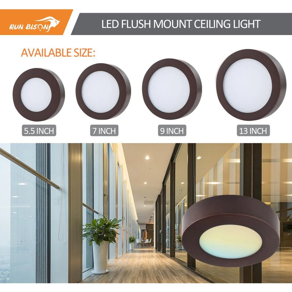 This elegant design product can provide exceptional performance in general lighting application and can also serve as a cost effective temporary lighting solution. The flush mount LED downlight provide 5 color temperatures of 2700K soft white, 3000K warm white, 3500K natural white, 4000K cool white or 5000K daylight for selection, you can choose the most suitable light for the living room, bedroom, bathroom and other areas according to your preferences. The RUN BISON flush mount Offers high brightness with 1,050 Lumens output equivalent to 60-Watt incandescent, comes with 90 plus CRI provides superior color rendering. Featuring Driver on Board technology that increases performance and reliability. The flush mount match most TRIAC dimmers in the market, smooth dimming range from 10% to 100%. This canless LED downlight is proved for top quality standard and safe operation. ETL-Listed for your safety we uphold the highest standards for all our products by testing each product for optimal performance and safety. Our LED retrofit downlights are instant on with the latest in LED flicker -free technology for maximum eye comfort.