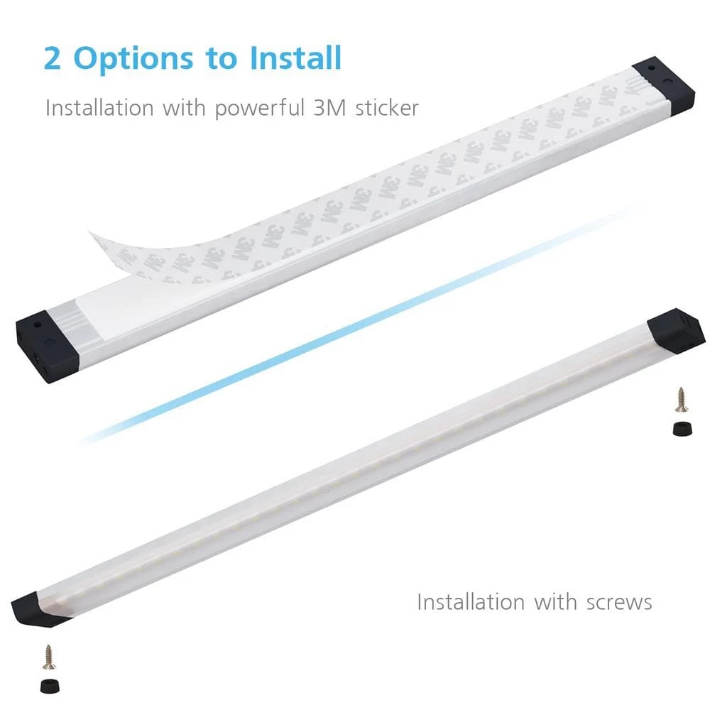 - Breezy install: whether you prefer screws or 3 m stickers, these lights can be installed and shining just minutes after you open the box, the adhesive on the stickers is more than strong enough to hold the light bars and wire clips make for a mess-free install, just be sure to position the sensor about an inch from the lip of the cabinet to ensure a good scan every time