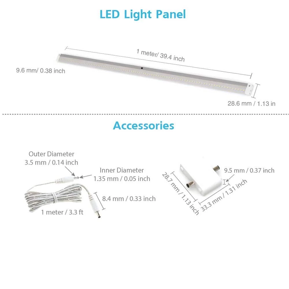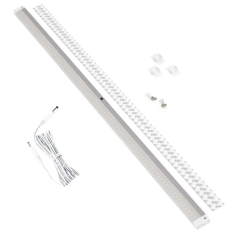 - Package content: 1 LED bar light with IR sensor, 1 connection cable (3.3 ft.), 1 connector, 2 wire clips with 3M sticker preinstalled, one 3M double-sided stickers, 2 screws, 2 screw caps