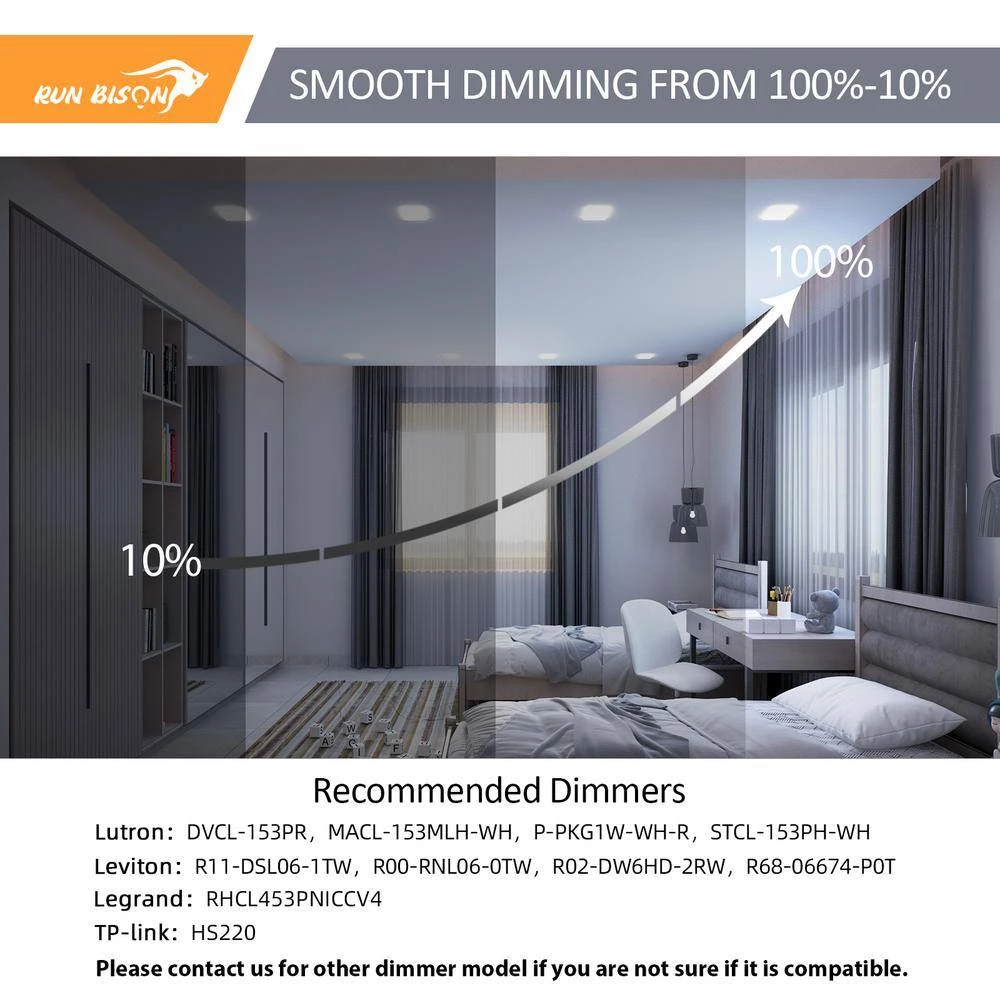 - Smooth dimming: the flush mount recessed retrofit ceiling lights match most TRIAC dimmers in the market, smooth dimming range from 10% to 100%