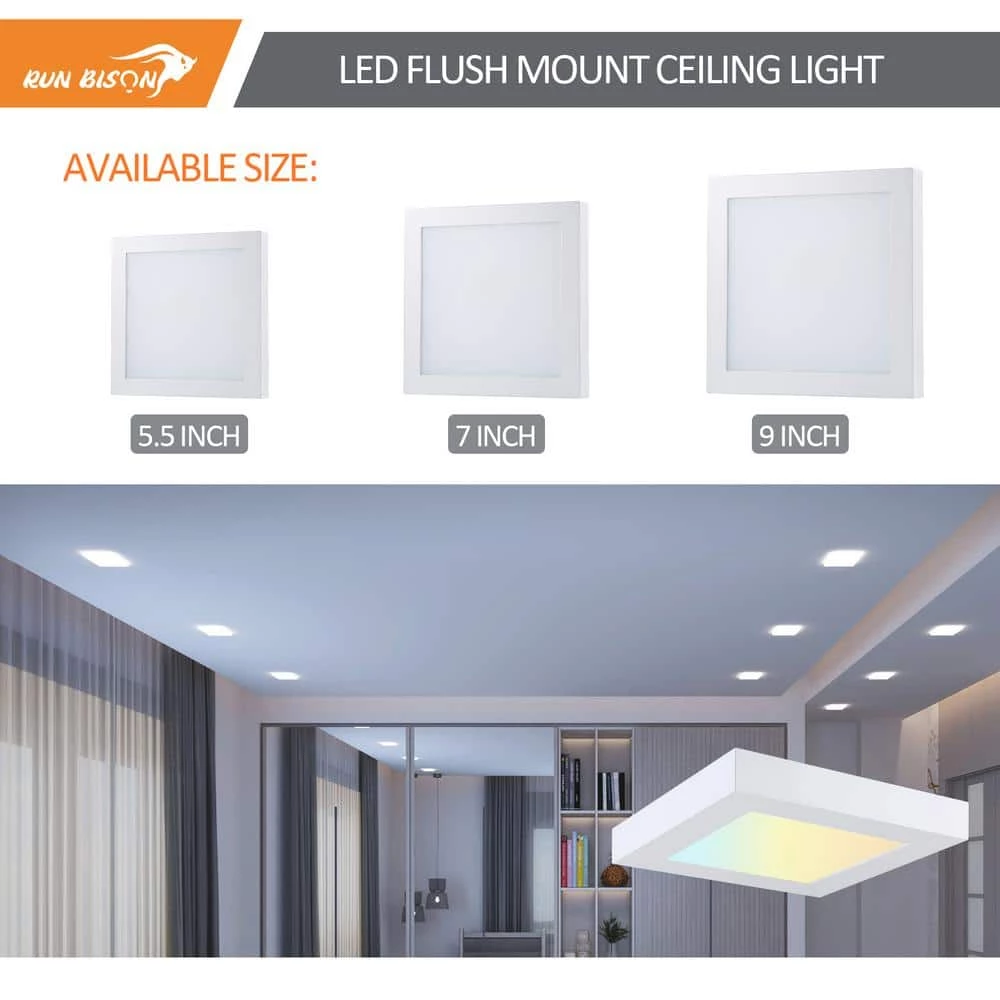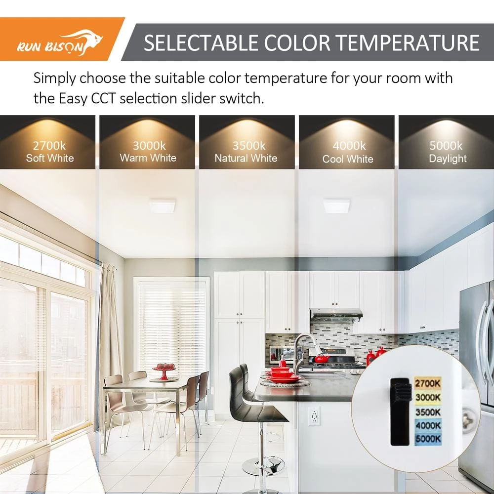 This elegant design product can provide exceptional performance in general lighting application, and can also serve as a cost effective temporary lighting solution. The flush mount LED downlight provide 5 color temperatures of 2700K soft white, 3000K warm white, 3500K natural white, 4000K cool white or 5000K daylight for selection, you can choose the most suitable light for the living room, bedroom, bathroom and other areas according to your preferences. The RUN BISON flush mount Offers high brightness with 580 Lumens output equivalent to 40-Watt incandescent, comes with 90 plus CRI provides superior color rendering. Featuring Driver on Board technology that increases performance and reliability. The flush mount match most TRIAC dimmers in the market, smooth dimming range from 10% to 100%. This canless LED downlight is proved for top quality standard and safe operation. ETL-Listed for your safety we uphold the highest standards for all our products by testing each product for optimal performance and safety. Our LED retrofit downlights are instant on with the latest in LED flicker -free technology for maximum eye comfort.