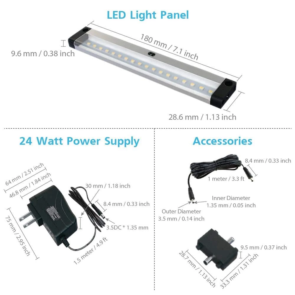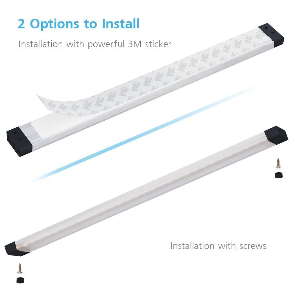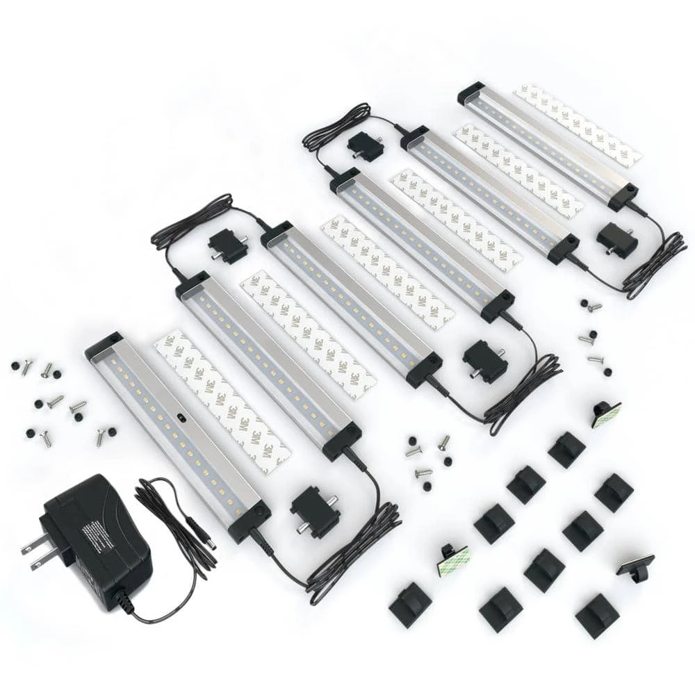 Discover Dimmable Hand Wave Activated LED Lighting with This 6-Bar Under-Cabinet LED Lighting Kit. With 6 LED bars, a 12-Watt power supply and a full complement of screws, wire clips and stickers, you’ll have everything you need to install warm, energy-saving light in your kitchen, pantry, garage, office, workshop, RV and more. Wave Your Hand: That’s all it takes to turn on or off your lights, hold your hand under the sensor, you can adjust brightness from 10% to 100%. Quick Install: For the quickest and lowest profile install, simply use the included double-sided stickers. Whether you want to install all 6 lights together in a chain or spread them further apart beneath your cabinets, this kit includes everything you’ll need.